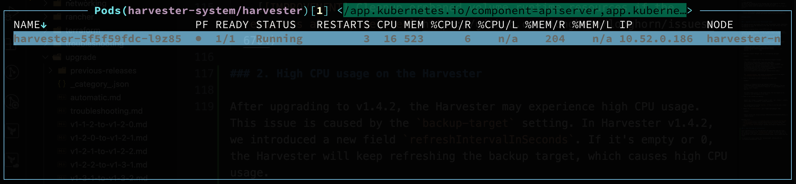 1. High CPU usage on the Harvester