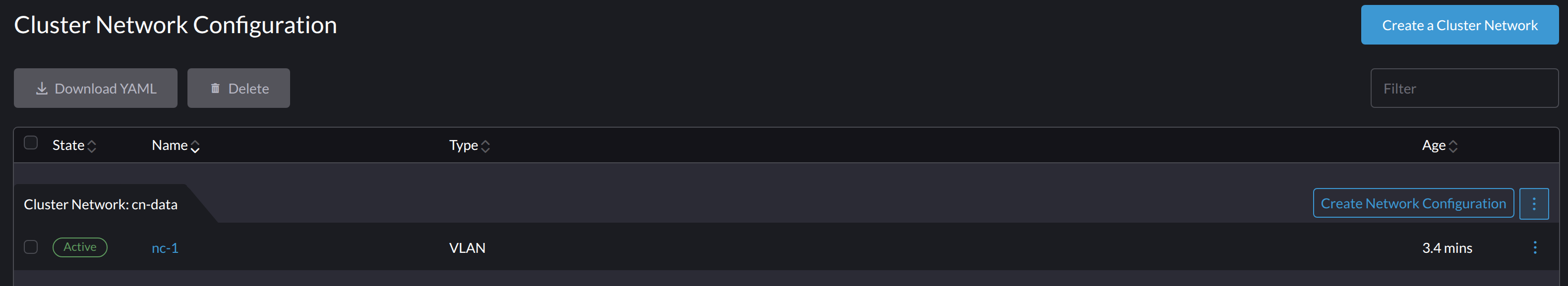 A cluster network called mgmt is automatically created when a Harvester cluster is deployed. You can also create custom cluster networks that can be dedicated to virtual machine traffic.