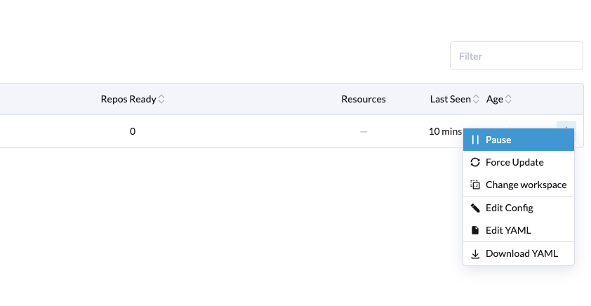 - Click Next, and then define the Git repo targets. You can select all clusters, an individual cluster, or a group of clusters.