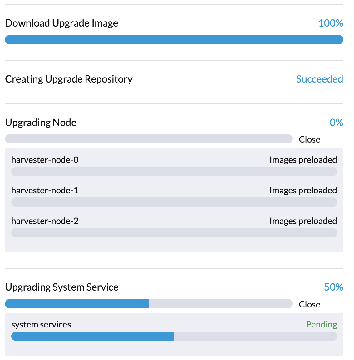 harvester-system hvst-upgrade-vq4hl-apply-manifests-65vv8 1/1 Running 0 87m // waiting for managedchart to be ready